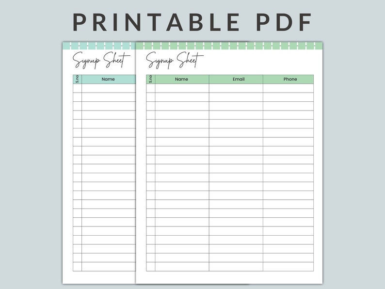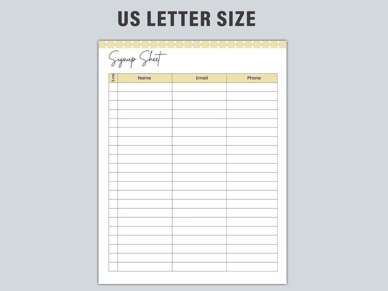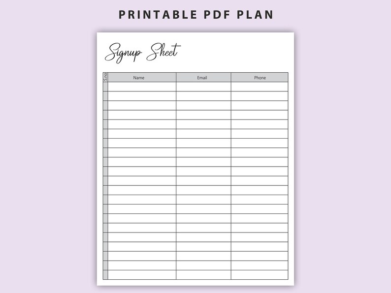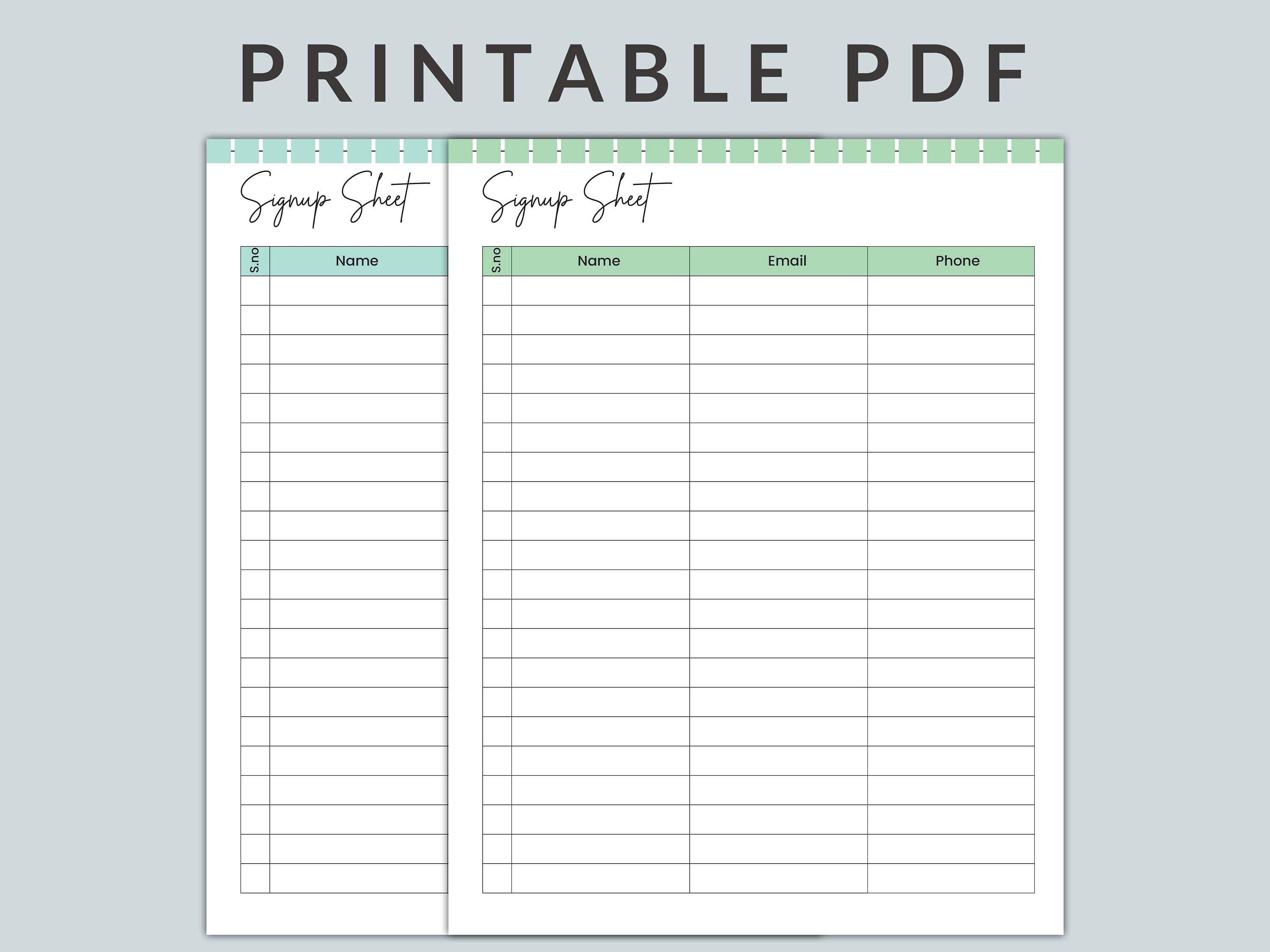 Printable Signup Sheet Letter PDF Office Template Event Sign Up