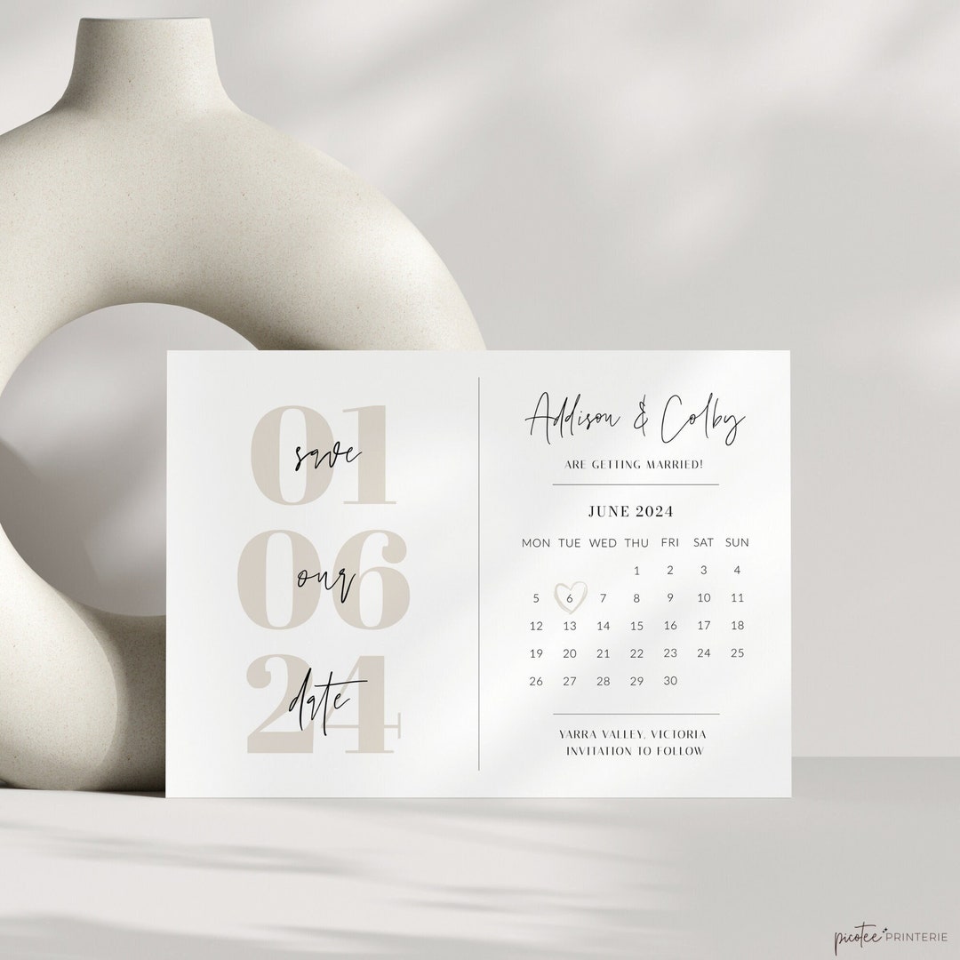 Minimal Save the Date Calendar Printable Simple Calendar Wedding Save