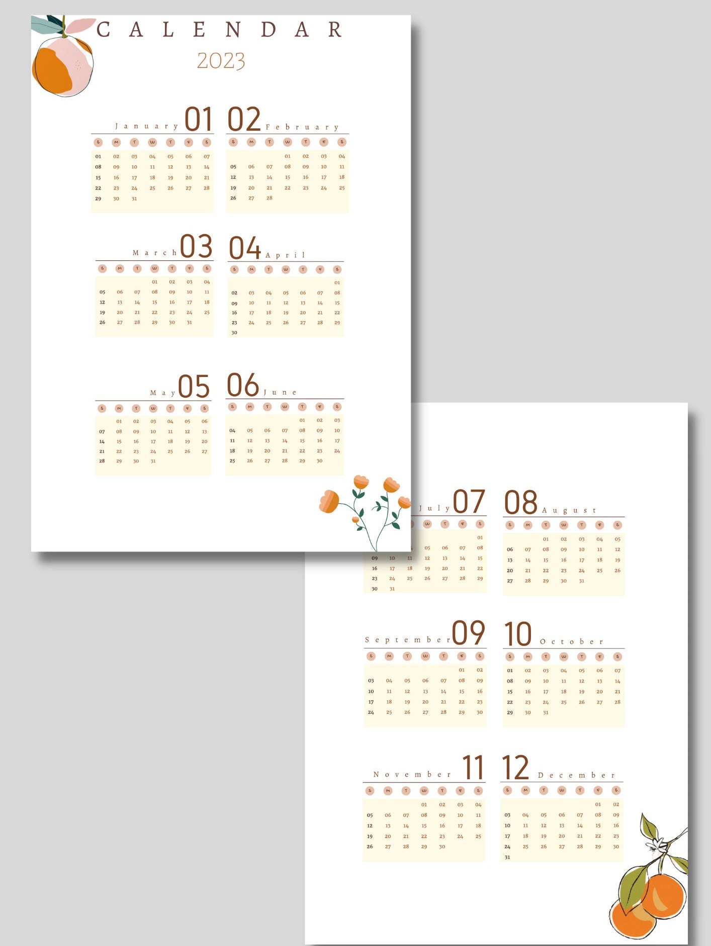 2023 Calendar Printable Simple Calendar 2023 Desk Calendar Orange
