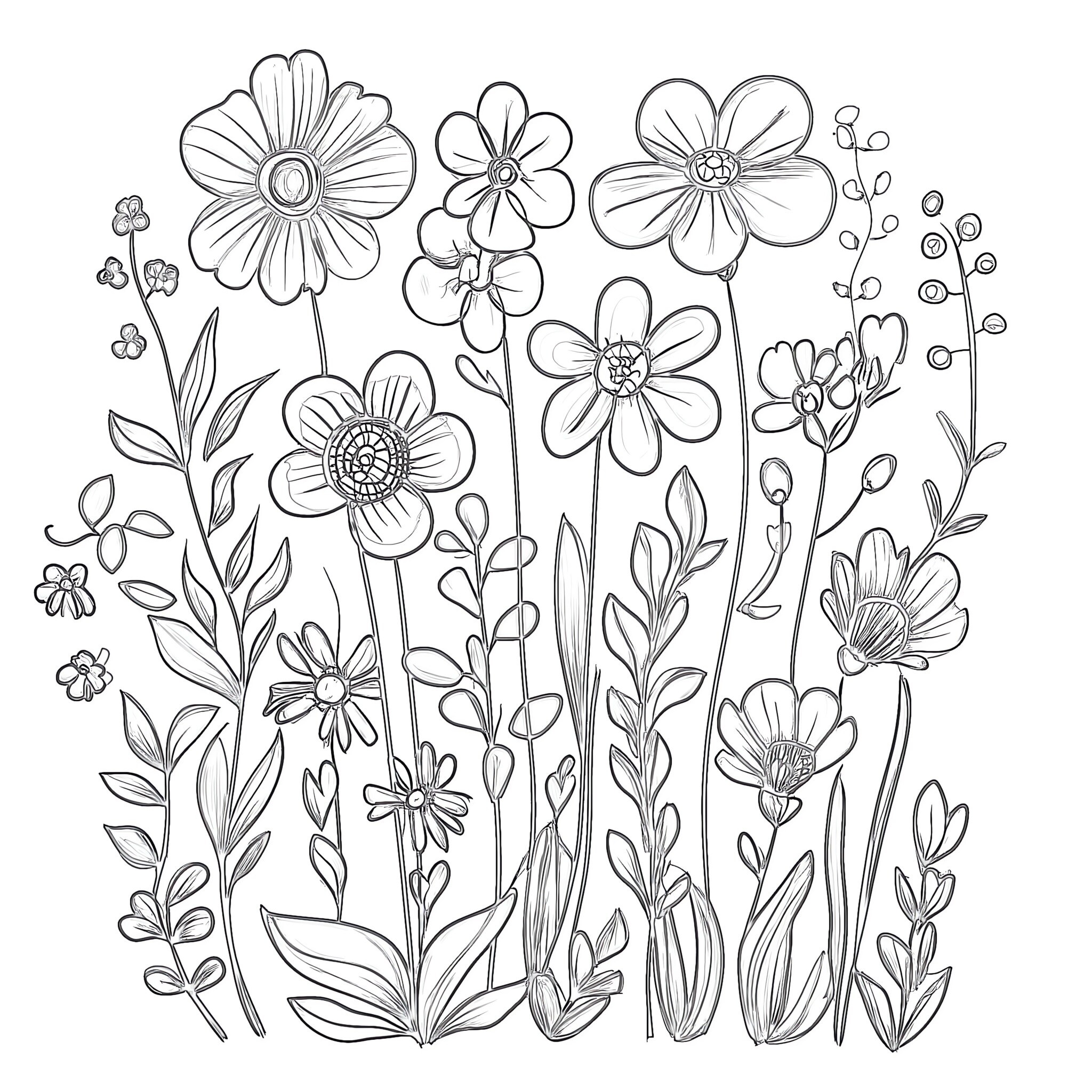 Simple Small Flowers Coloring Page JPEG Image Printable Black and