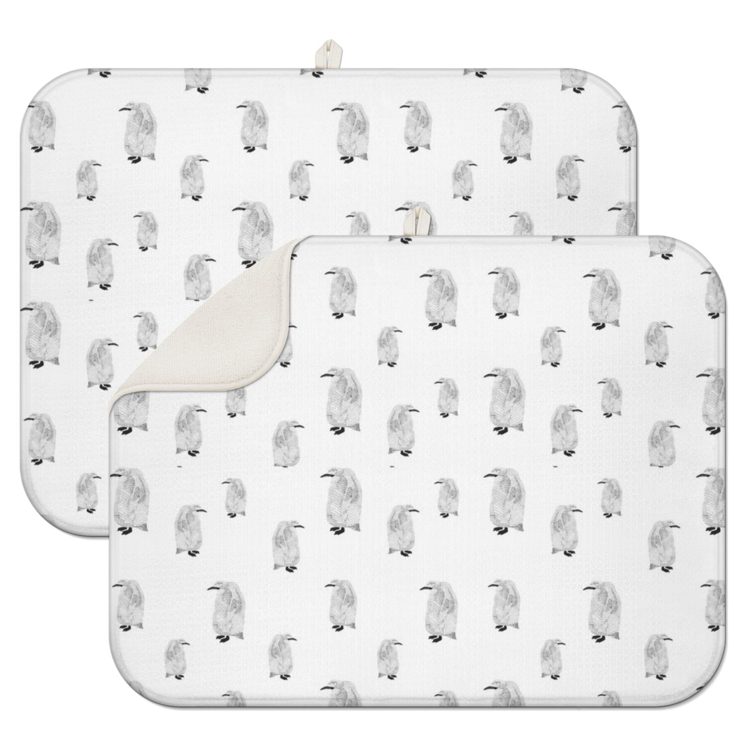 2pcs Penguin Print Dish Drying Mat Super Absorbent Microfiber Kitchen