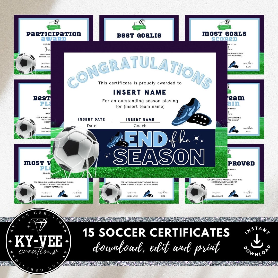15 Printable Soccer Award Certificates INSTANT DOWNLOAD Editable