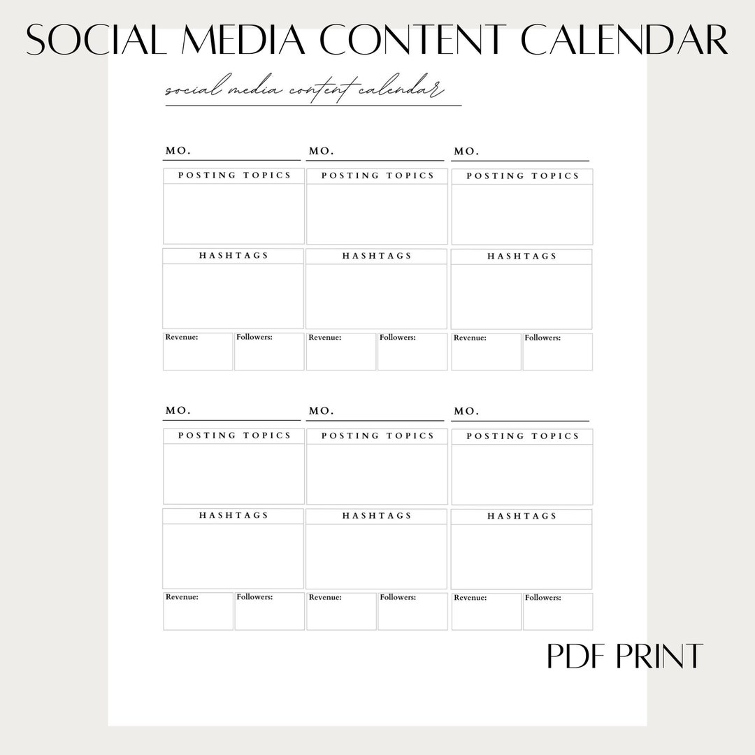 Social Media Content Calendar Printable Fillable Content Planner Etsy