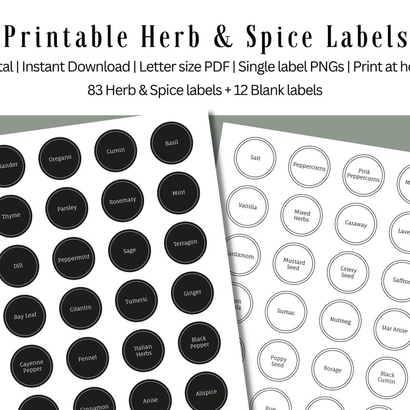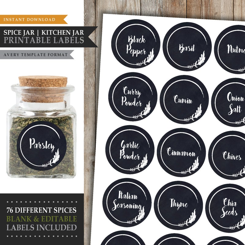 Spice Jar Labels Printable Instant Digital Download Etsy