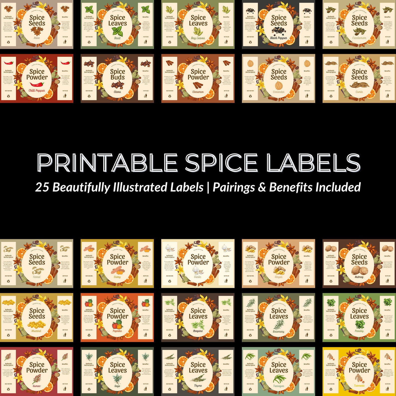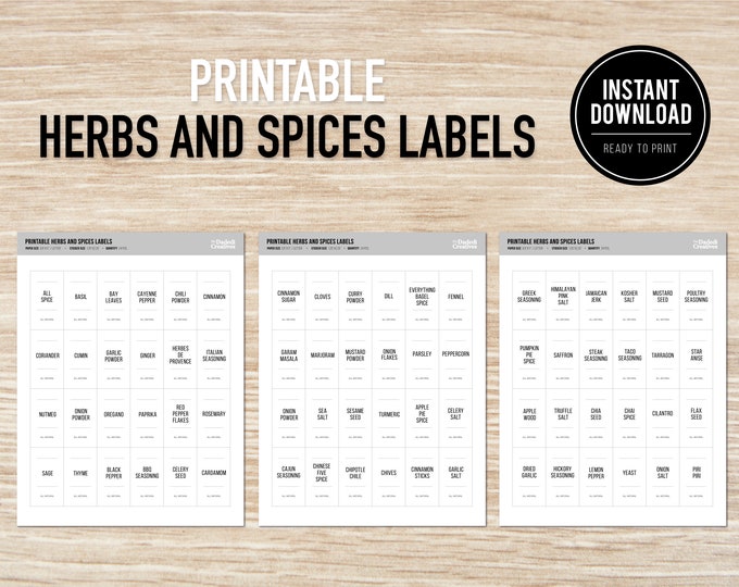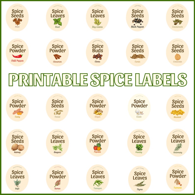 25 Printable Spice Labels Instant Digital Download PNG SVG A4