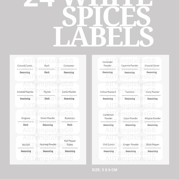 Minimalist Spice Labels Template Editable Printable