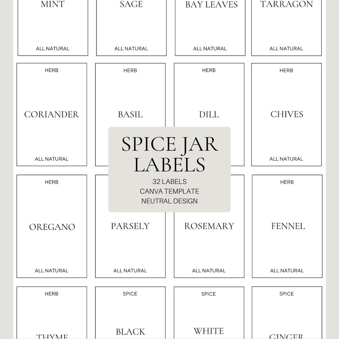 Printable Spice Jar Labels Customisable Canva Template Organised