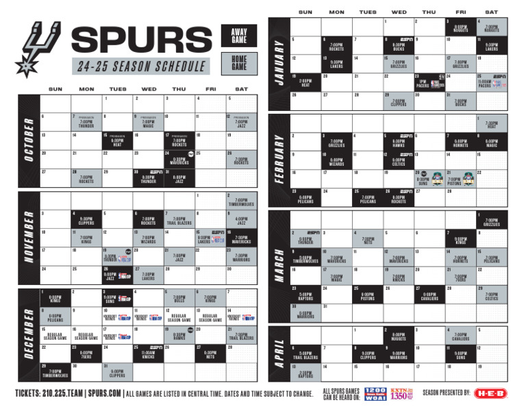Printable 2024 25 San Antonio Spurs Schedule TV Broadcasts and