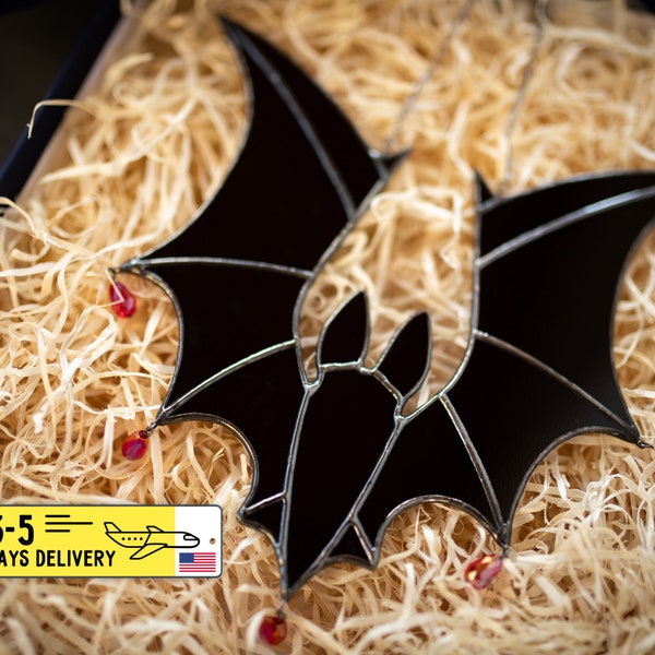 Bat Stained Glass Witchy Stained Glass Bat Suncatcher Goth Etsy