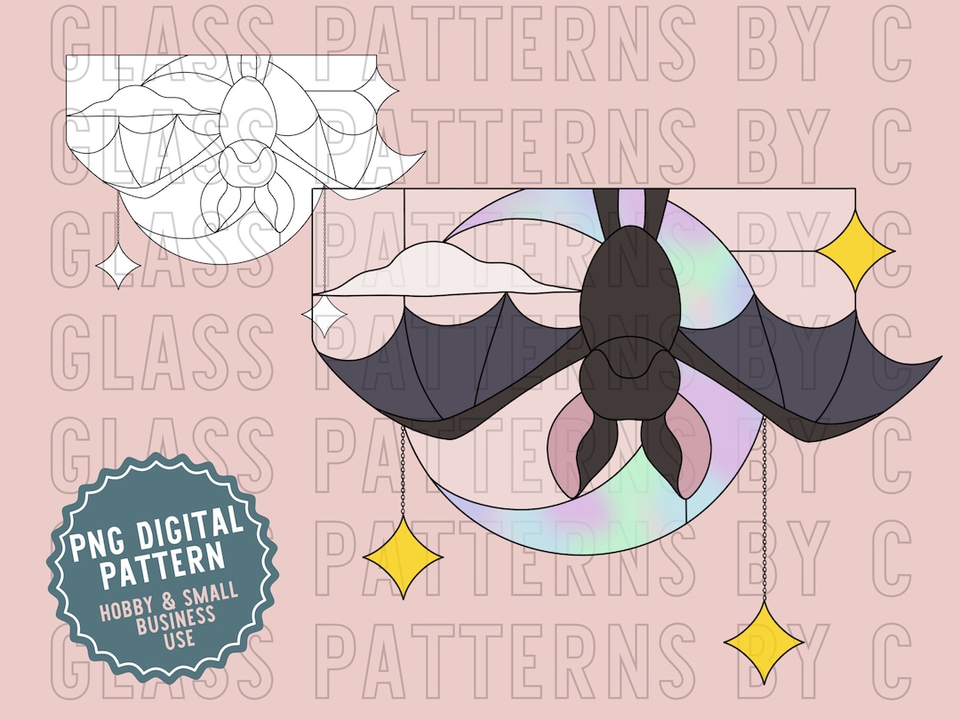 Flying Bat Digital Stained Glass Pattern Includes Printable Etsy