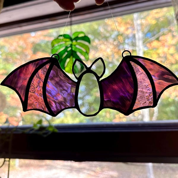 Stained Glass Bat Suncatcher Bat Stained Glass Stained Glass Etsy
