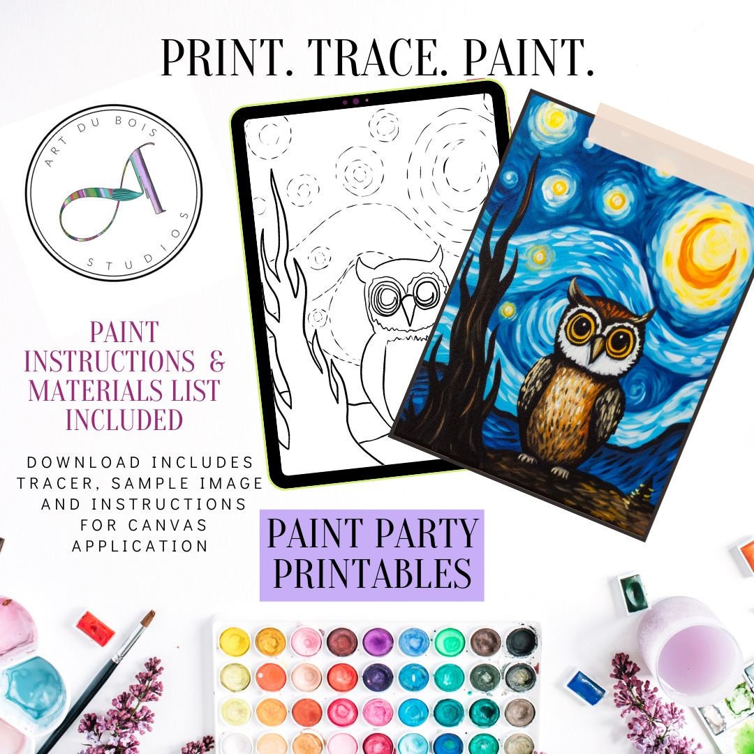 DIY Paint Party Printable Starry Night Owl Instant Download DIY