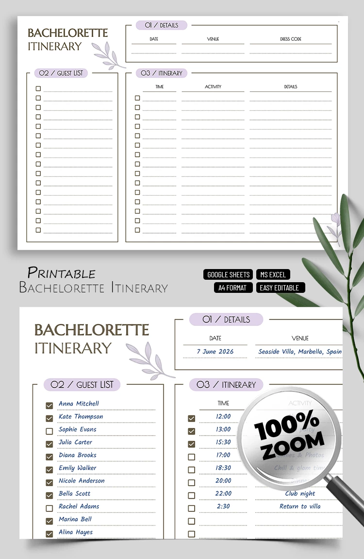Free Printable Bachelorette Itinerary Template thegoodocs com