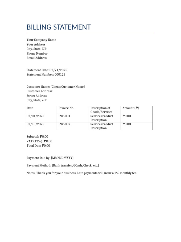 Free Printable Billing Statement Template Of Invoice vrogue co