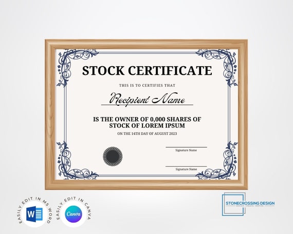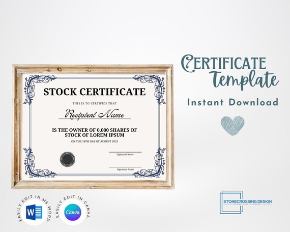 Elegant Stock Certificate Template Editable and Customizable Etsy