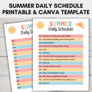 Summer Daily Schedule for Kids Summer Schedule Printable Editable