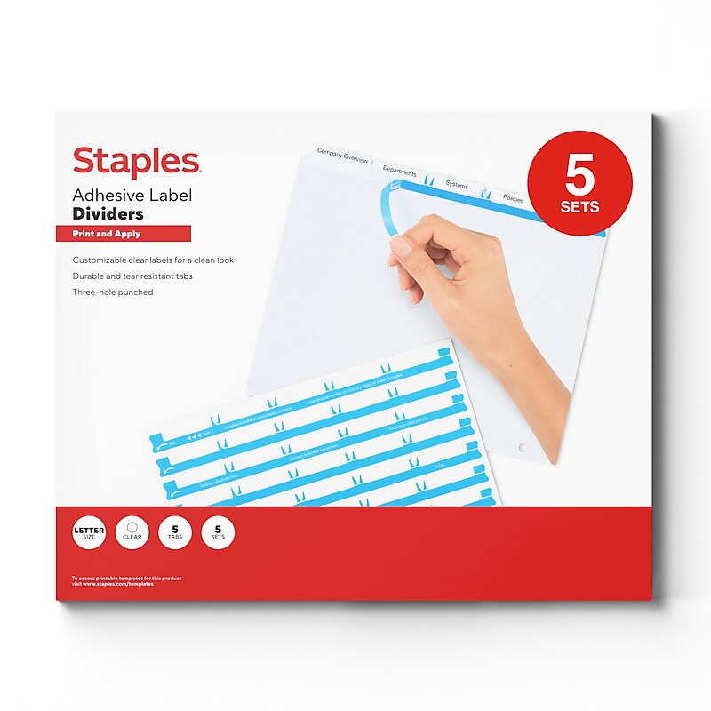 Staples Print Apply Label Dividers Clear 5 Tabs 5 Sets (ST63050