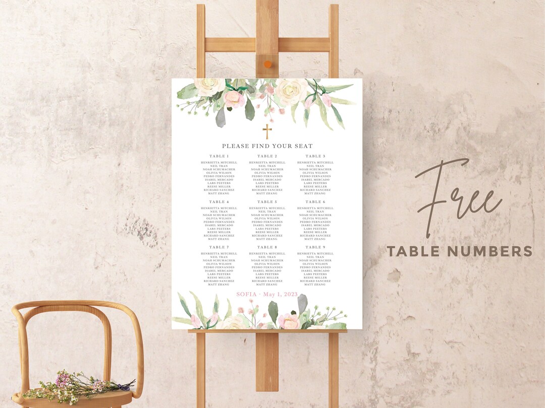 Ivory First Holy Communion Seating Chart Template Editable Seat Chart