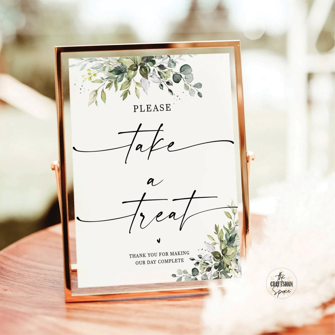Greenery Please Take A Treat Sign Printable Dessert Table Sign Candy