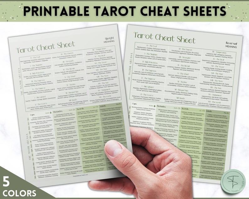 Printable Tarot Cheat Sheet Tarot Card Deck With Guidebook