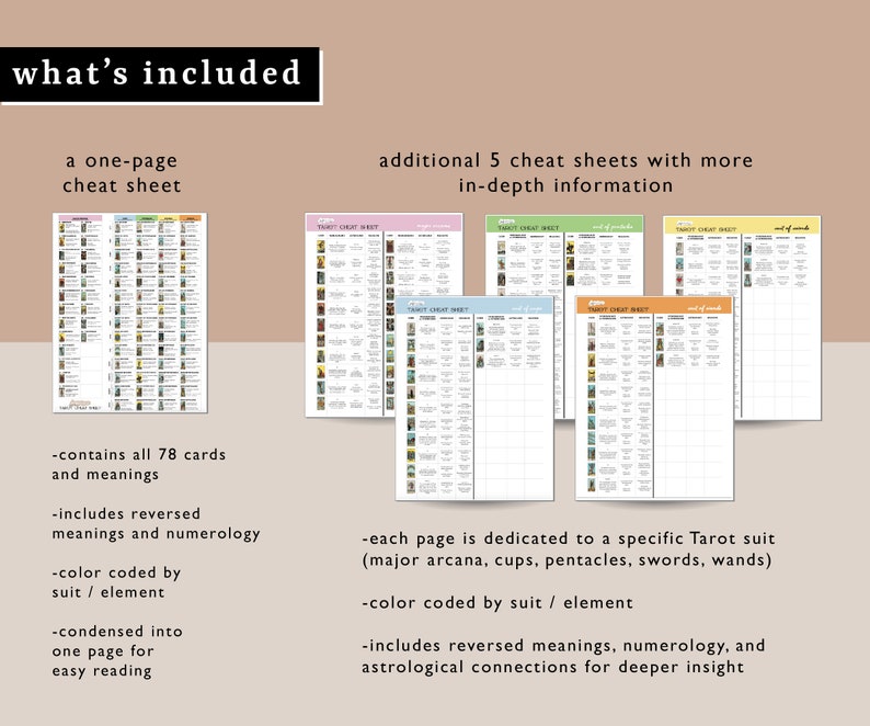 Printable Tarot Cheat Sheet Tarot Symbolism Printable Tarot Etsy