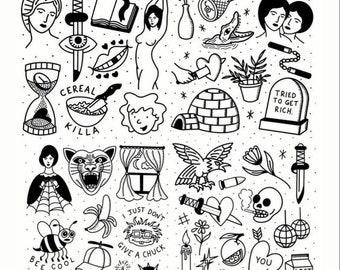 Temporary Tattoo Flash Sheet A5 Temp Tattoos Ignorant Etsy