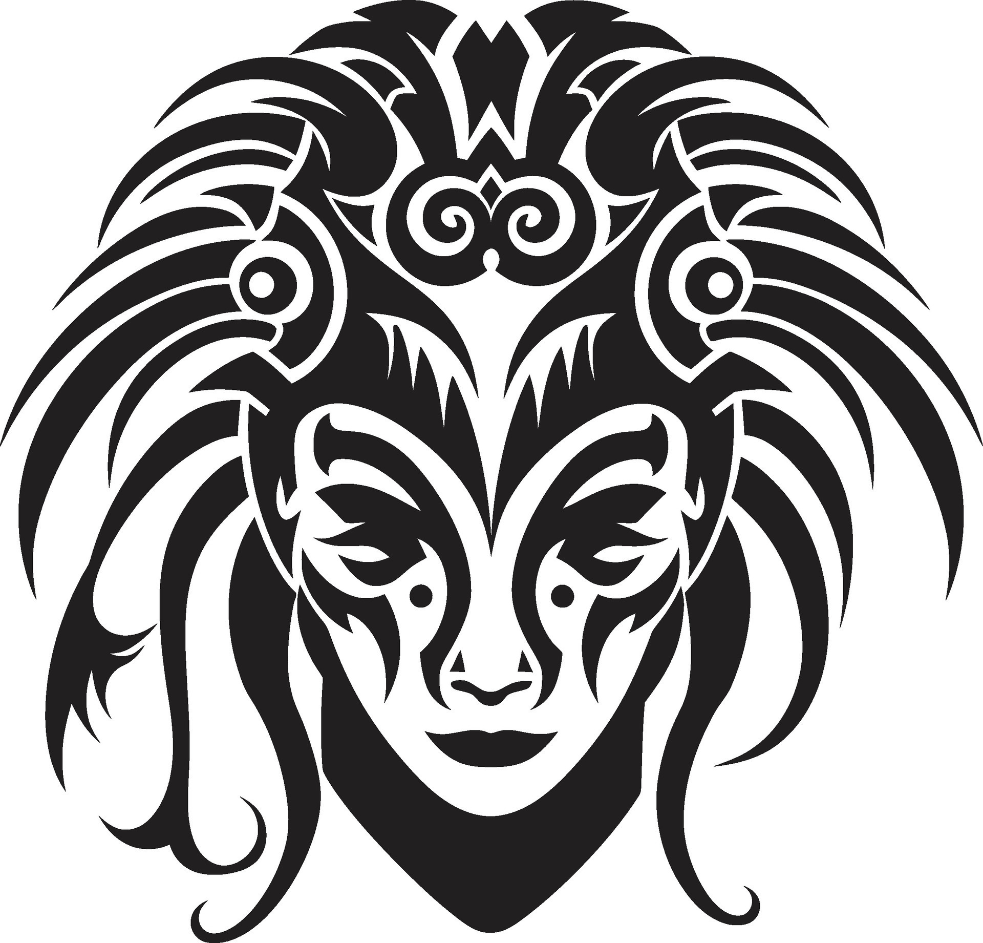 Abstract Face Shape Tribal Tattoo Illustration Drawing Graphic