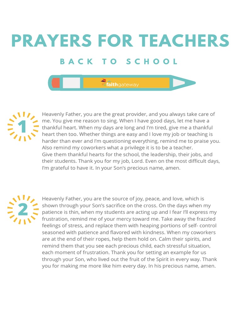 5 Prayers Teachers Printable Final PDF Download Free PDF God The