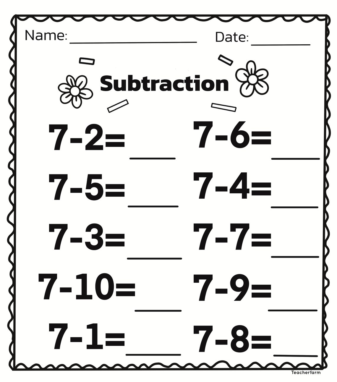 10 Subtraction Printable Teaching Worksheets 1 10 1st Grade Math Math
