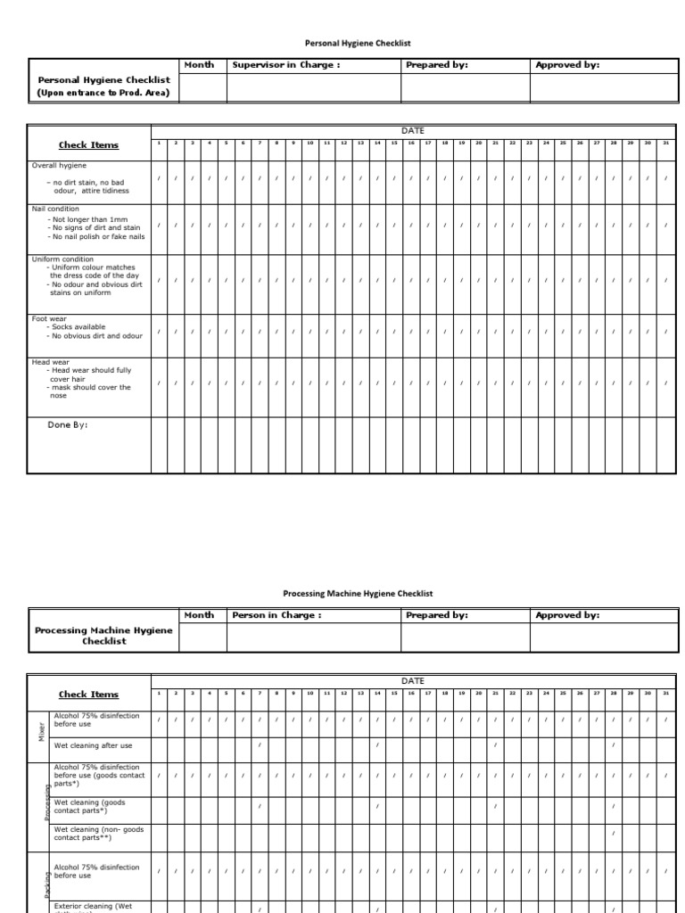 Weekly Personal Hygiene Checklist Printable