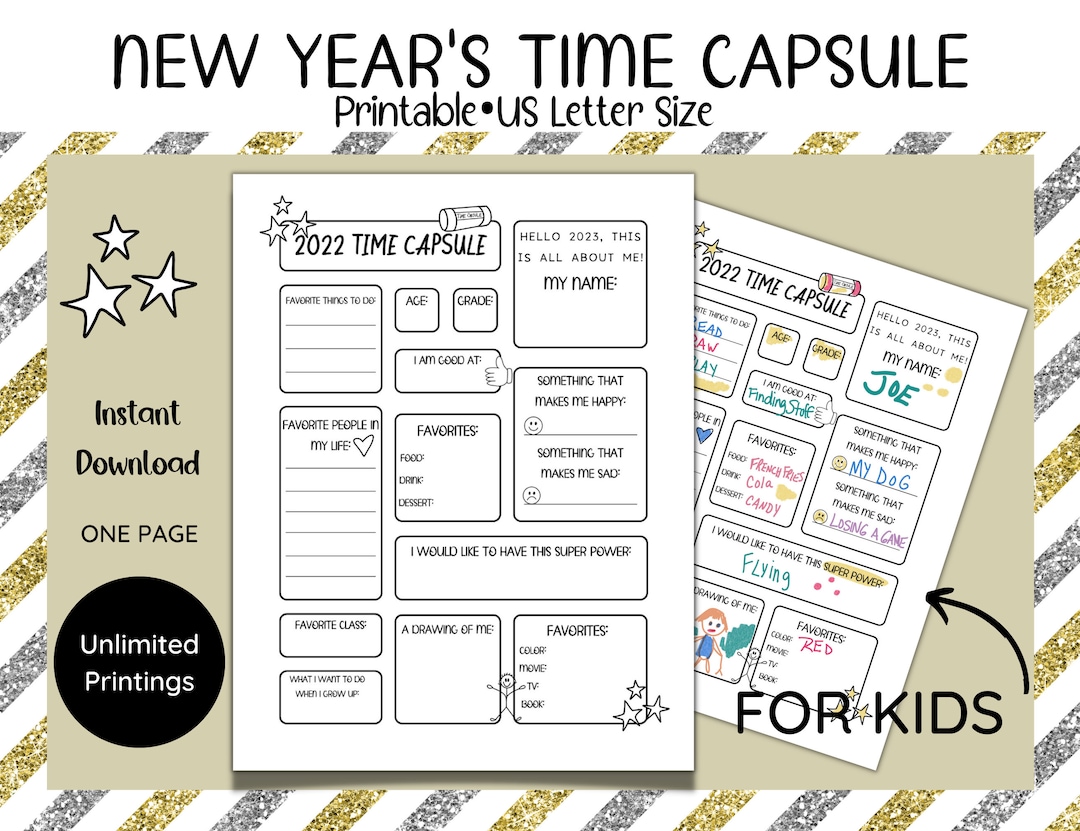 Time Capsule Questions for New Year #39 s Eve (2 Free Printables)