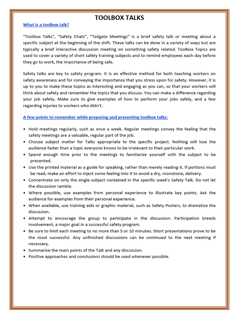 Tool Box Talk Layout at Sarah Miller blog