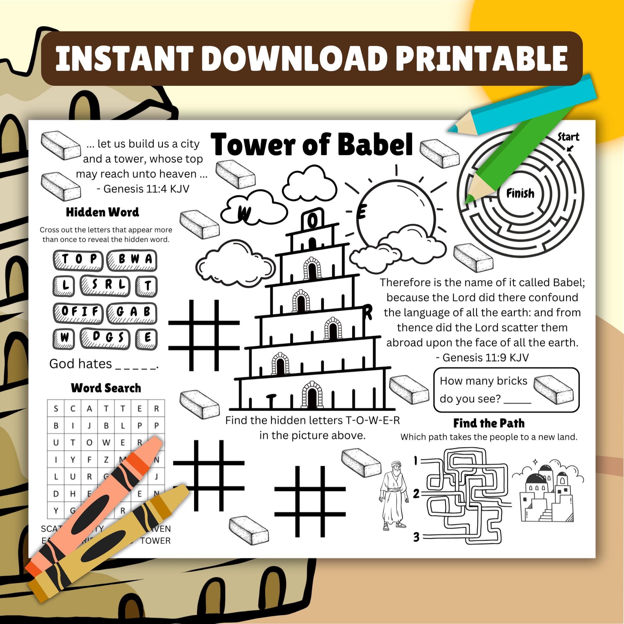 Tower of Babel Interactive Bible Lesson Printable Activity Sheets
