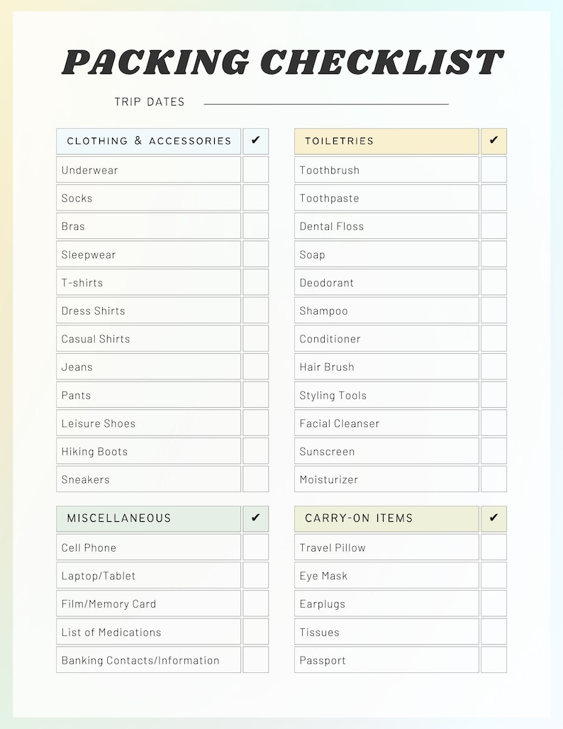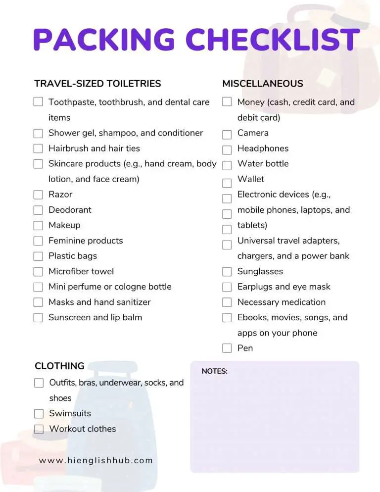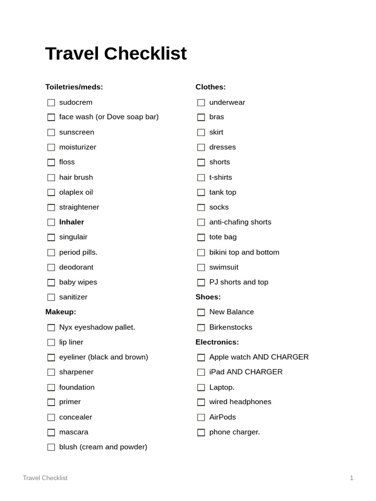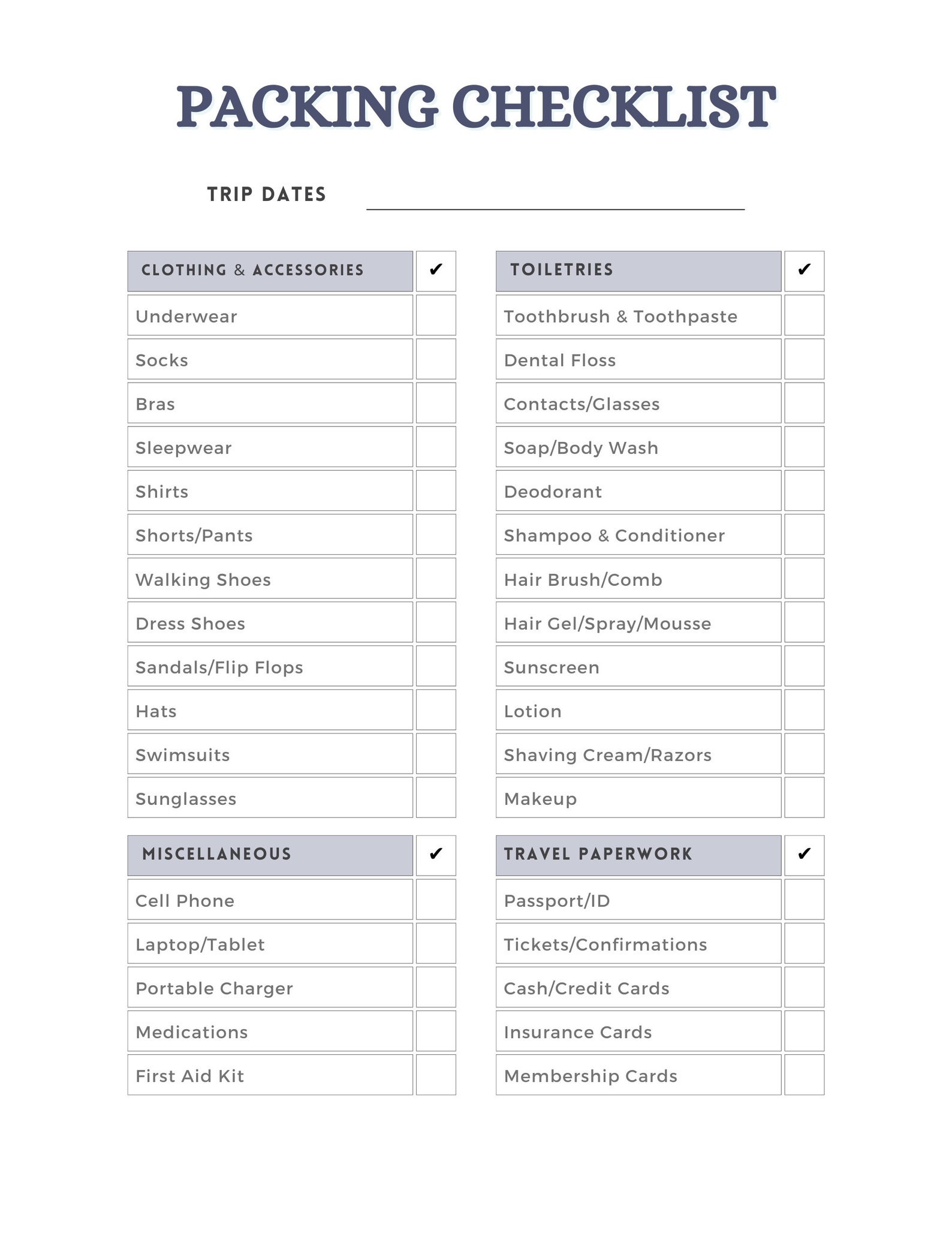 The Ultimate Packing Checklist Brianna Marie Lifestyle
