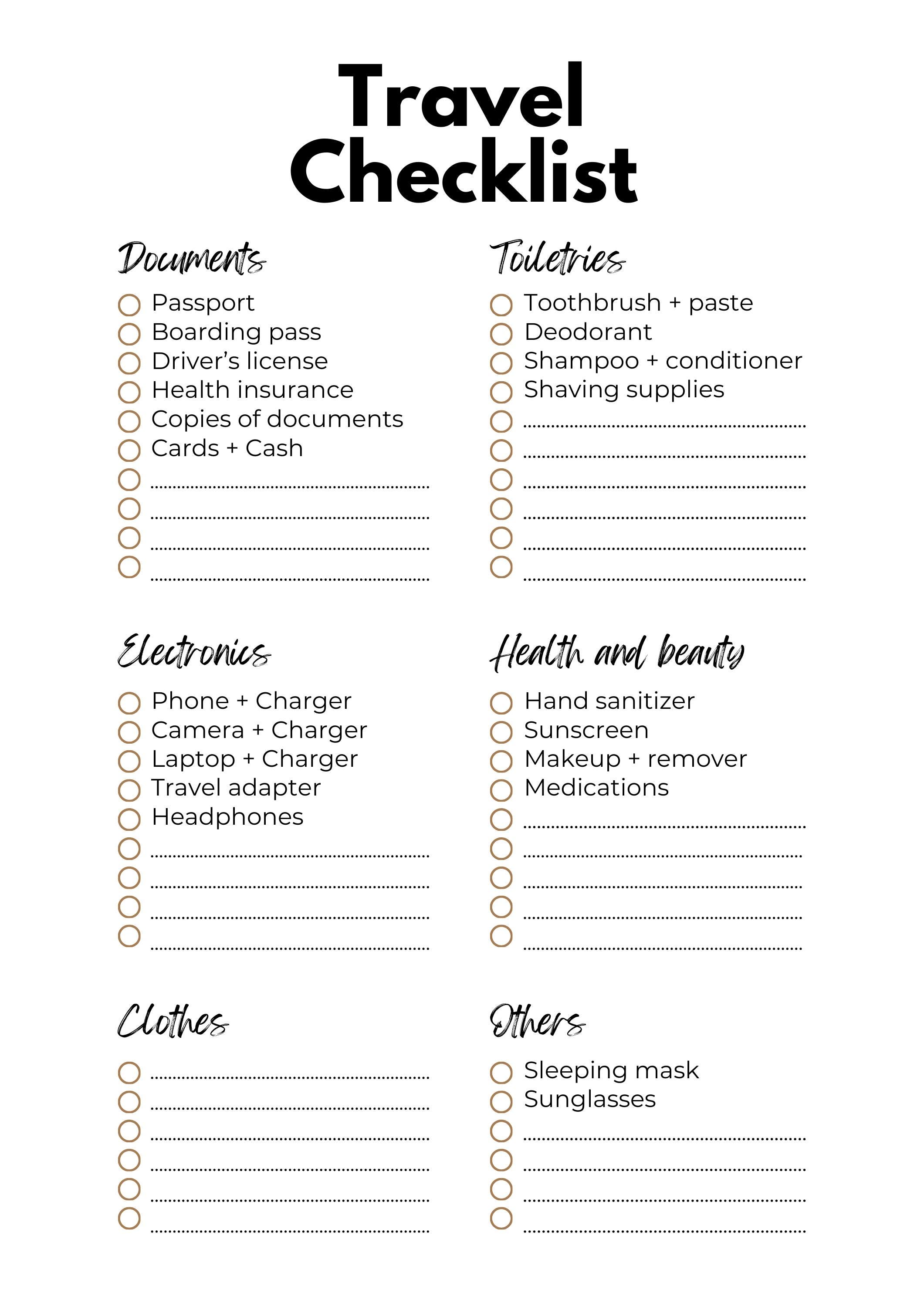 2025 Travel Checklist Template Fillable Printable PDF Forms Handypdf