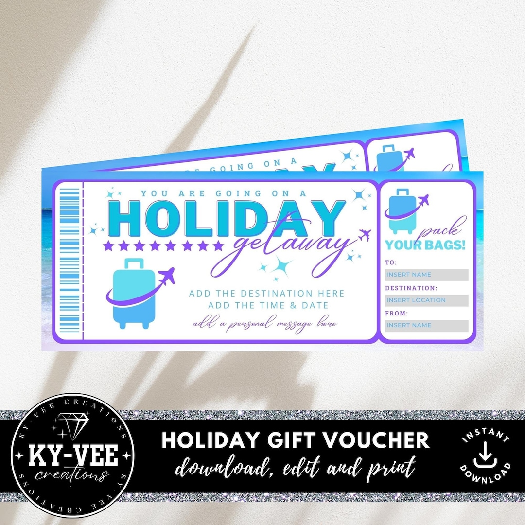 Printable Travel Gift Certificate Template INSTANT DOWNLOAD Holiday