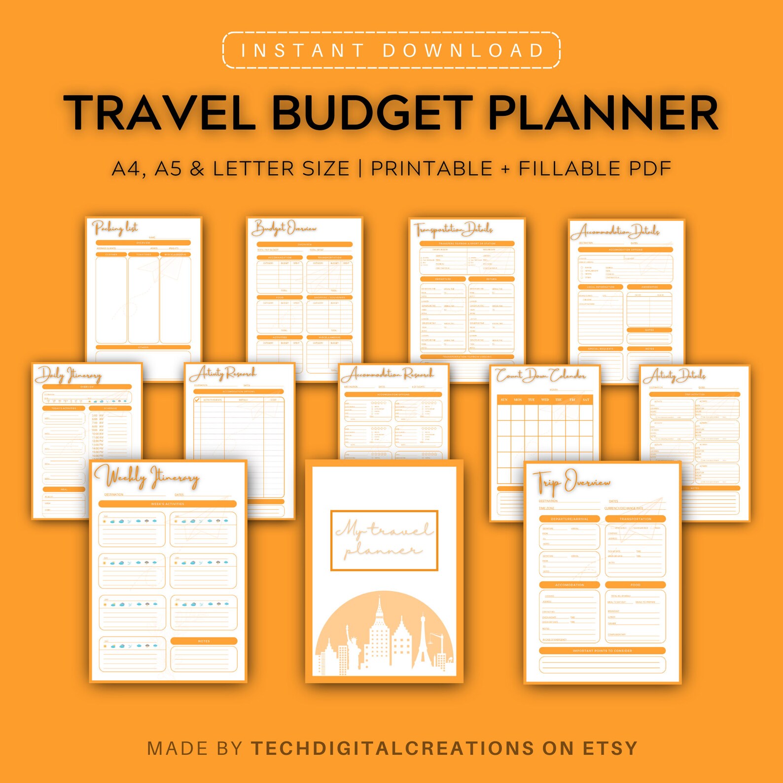 Travel Itinerary Printable Instant Download Destination Etsy