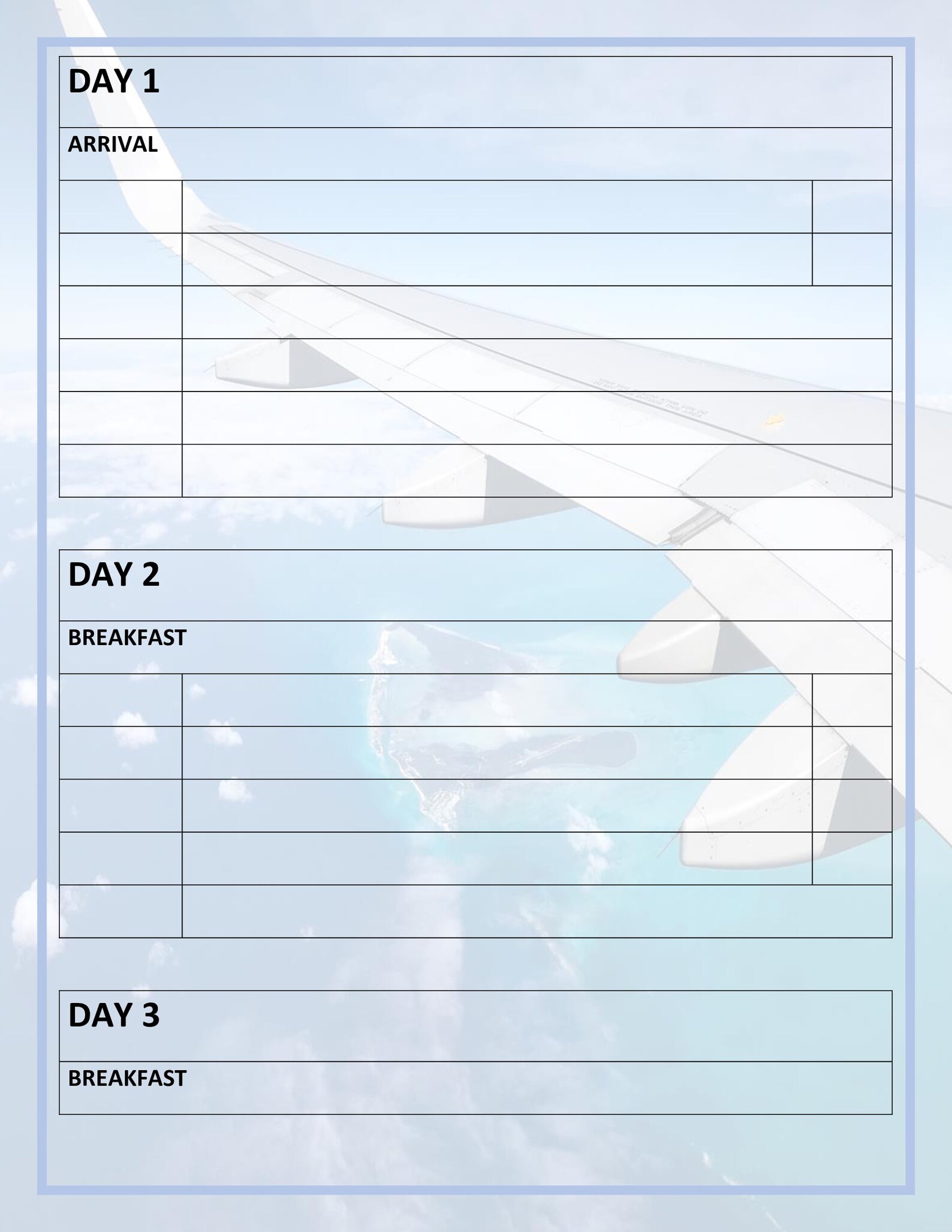 Printable Travel Itinerary
