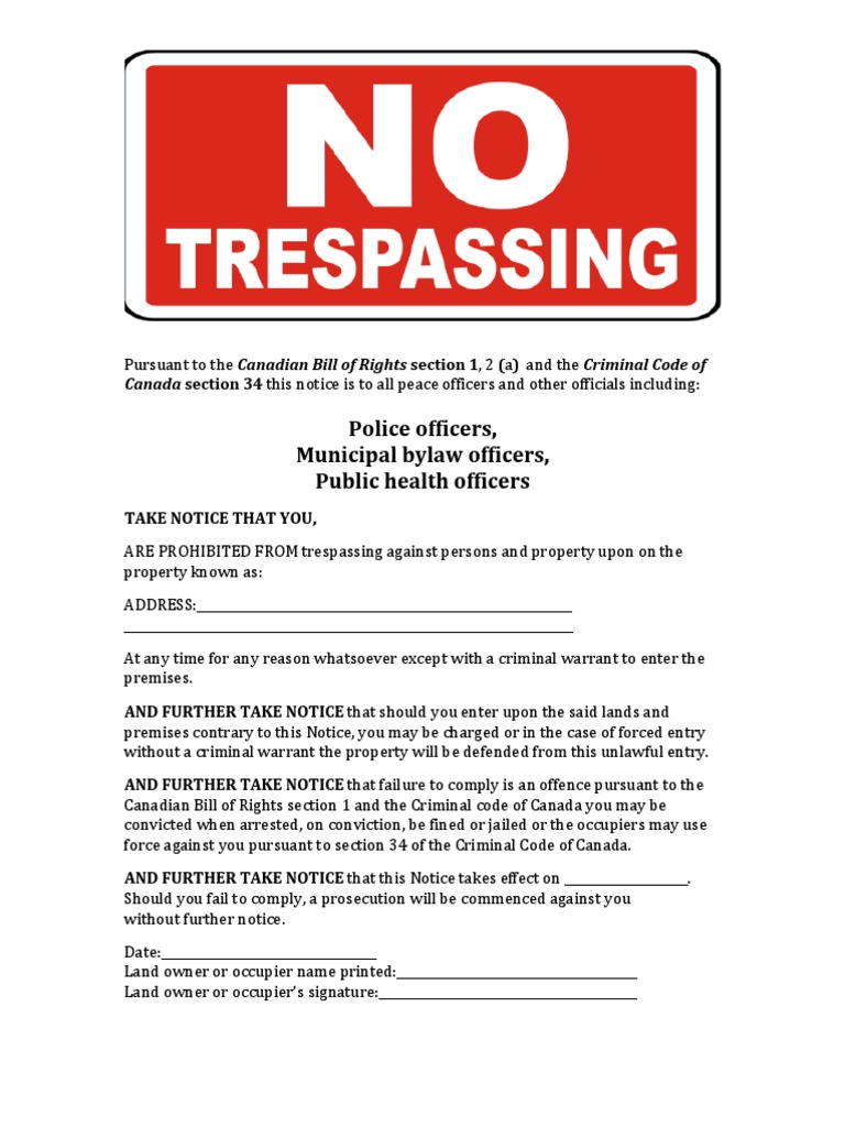 Printable Trespass Notice Form Printable Word Searches