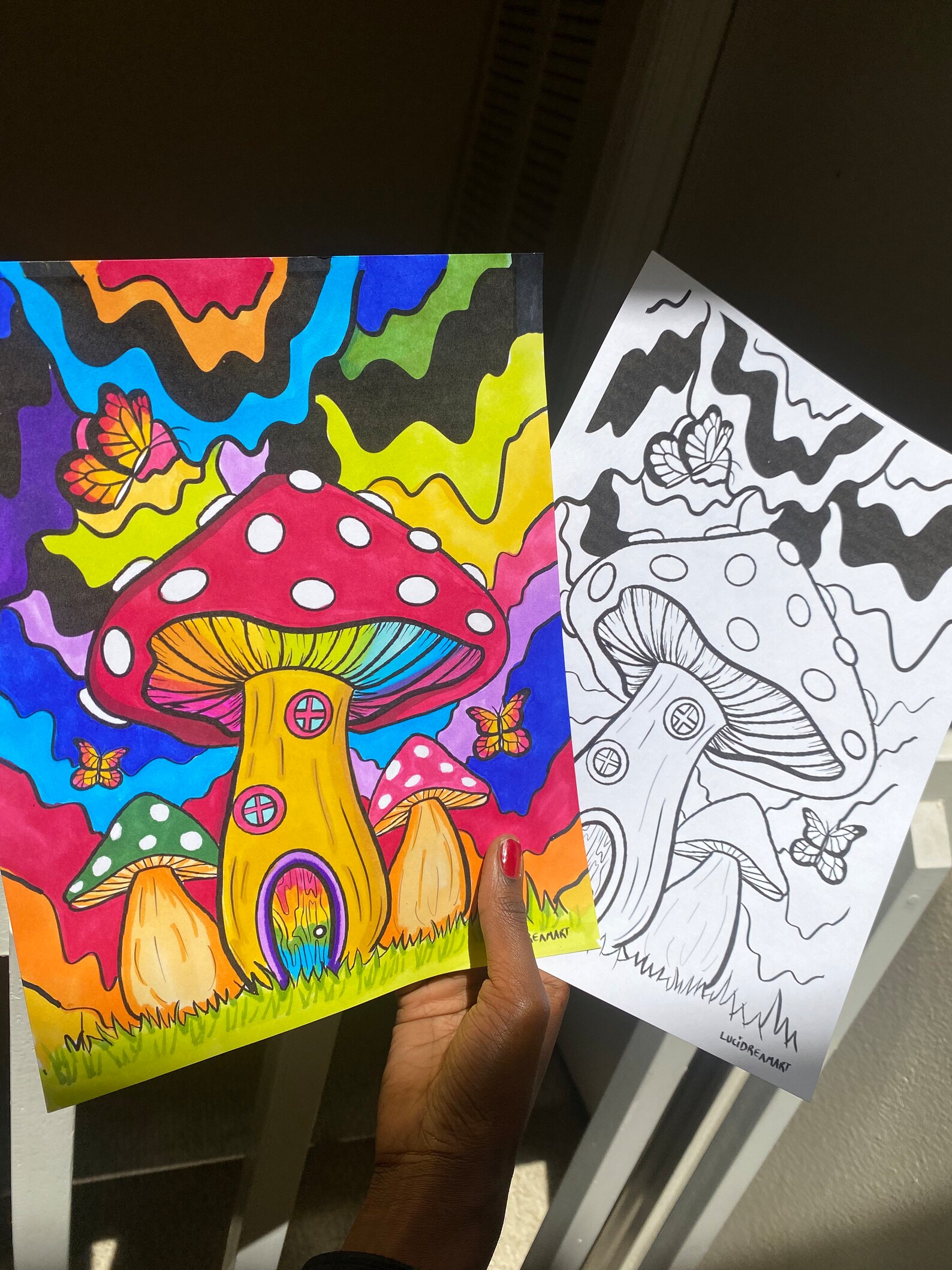 Mushroom Psychedelic Coloring Pages TrippyArt (printable PDF