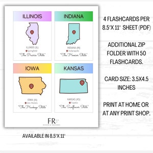 US States and Capitals Flashcards United States Homeschool Activity