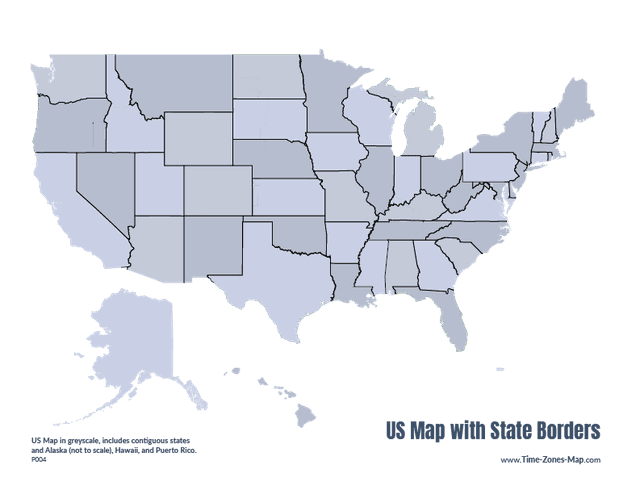 Simple and printable blank US Map in grayscale