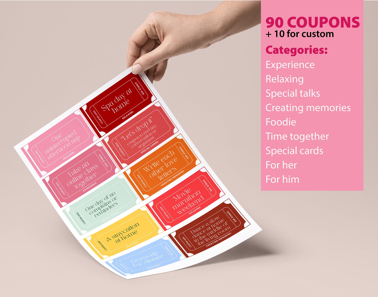 100 Love Coupon Book Printable Valentines Day Coupons Gift for Him