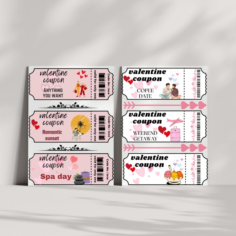 Pink Free Modern Valentine #39 s Day Tickets Printable Love Coupons