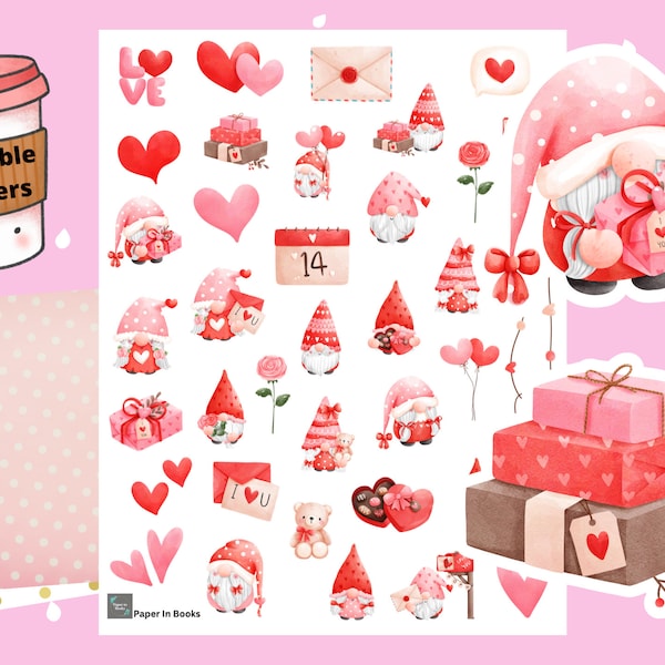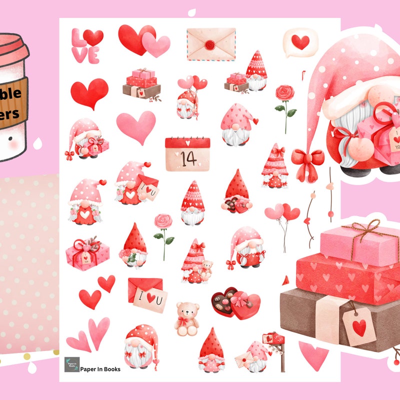 Printable Valentines Day Gnome Stickers Printable Valentines Day