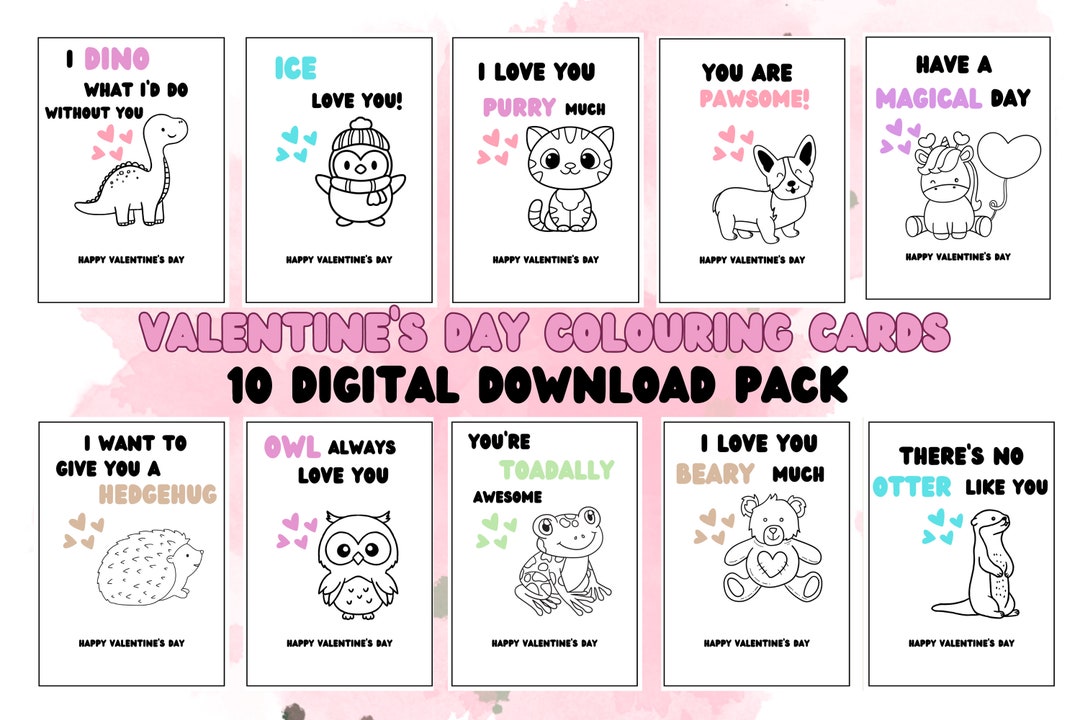 Kids Valentine s Day Coloring Printable Cards Etsy