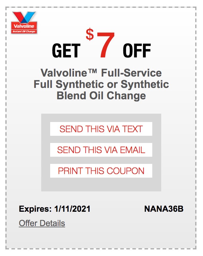 $10 off Valvoline Instant Oil Change coupon : r/firstordercoupon