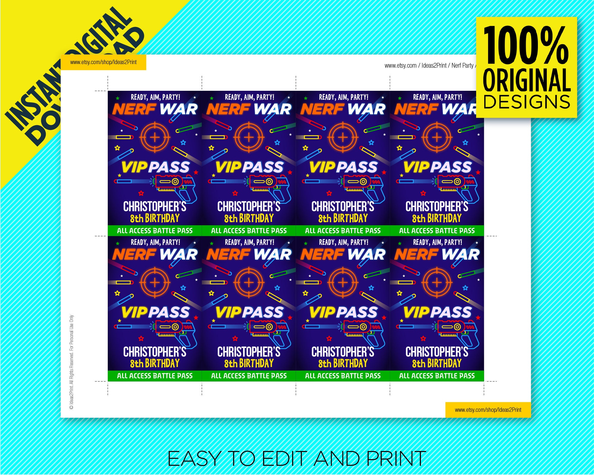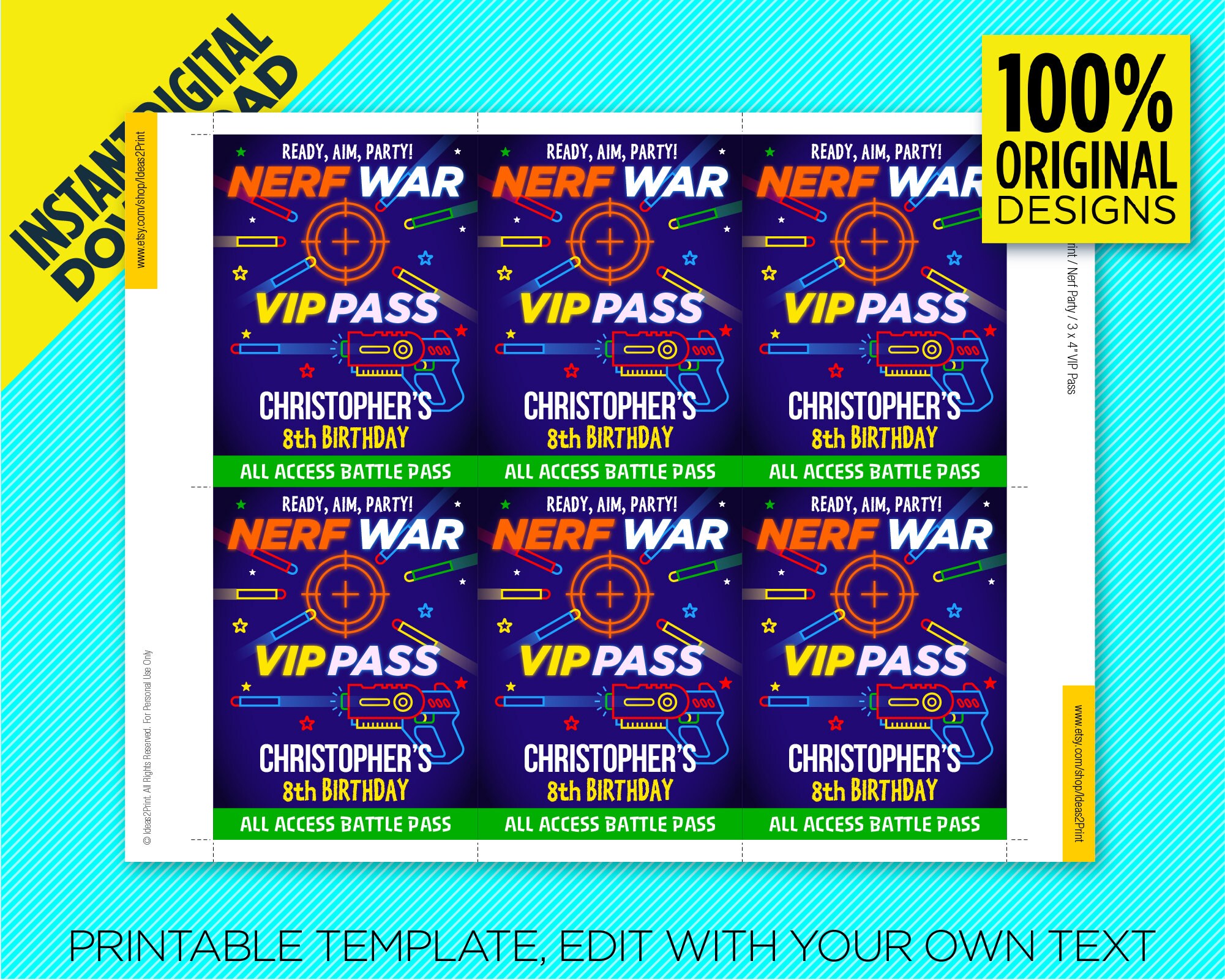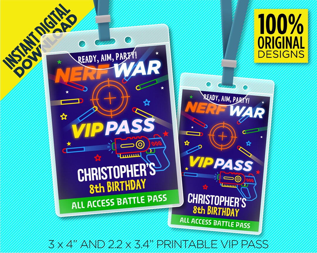 Nerf War Party Printable VIP Pass Dart Wars Vip Badge Dart Gun Party