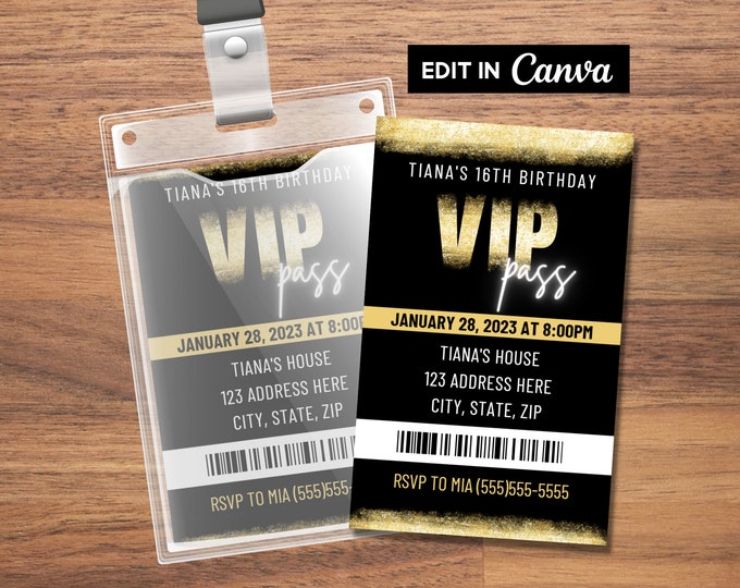 VIP PASS Sweet 16 21st Birthday Backstage Pass Birthday Invitation