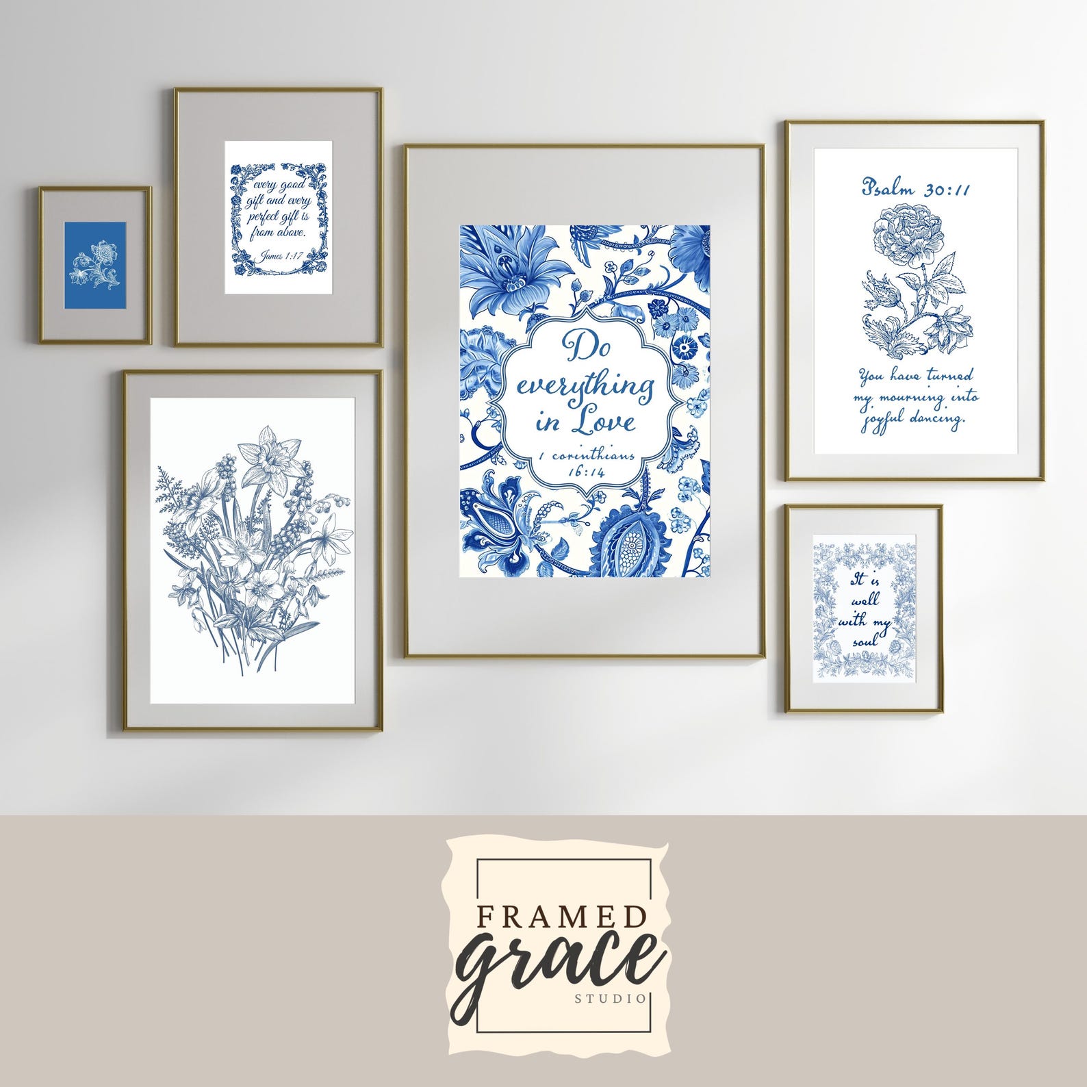 Vintage Blue Bow Printable Wall Art God is Good Gallery Wall Set of 6